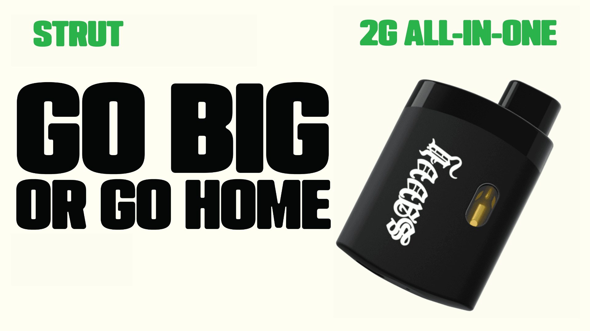Whether you're vibing at home, on the go, or looking for a go-to vape that delivers every time, it’s time to Strut. Stop by your local MÜV Dispensary or shop the 2G All-In-One online.